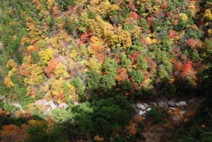 Nagiso town, Nagano Pref., one of the most beautiful villages in Japan is located along the Kiso river. Now is the best time to enjoy autumn leaves at Kakizore gorge. Kiso river(229km long) forms the Kiso Valley of Nagano and empties into Ise Bay. Over time it has shaped the valley offering visitors unique landscapes and views. Kakizore Gorge is one of such landscapes.