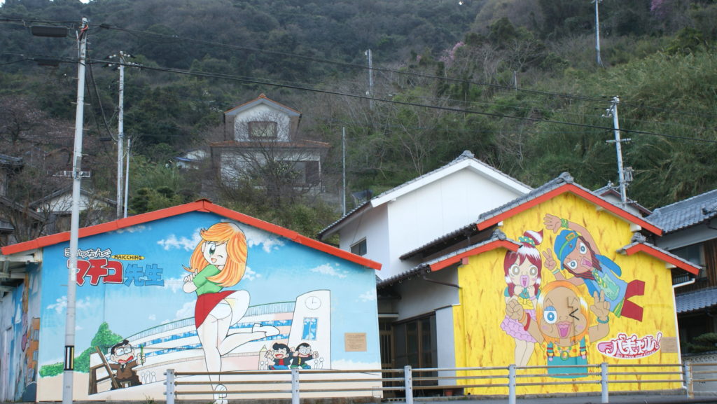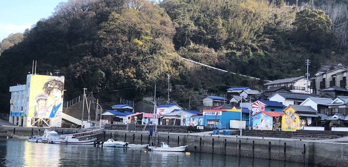 Kamijima town, one of the most beautiful villages in the Japan, a remote island town with 25 islands floating in the Setonai Sea.Among them today I would like to introduce you about quite interesting activity at Takai Kamijima.island whose population is just 16 as of today. (The youngest one is 66 years old.).They draw manga in vacant houses from more than ten years ago to try cheering such an island.