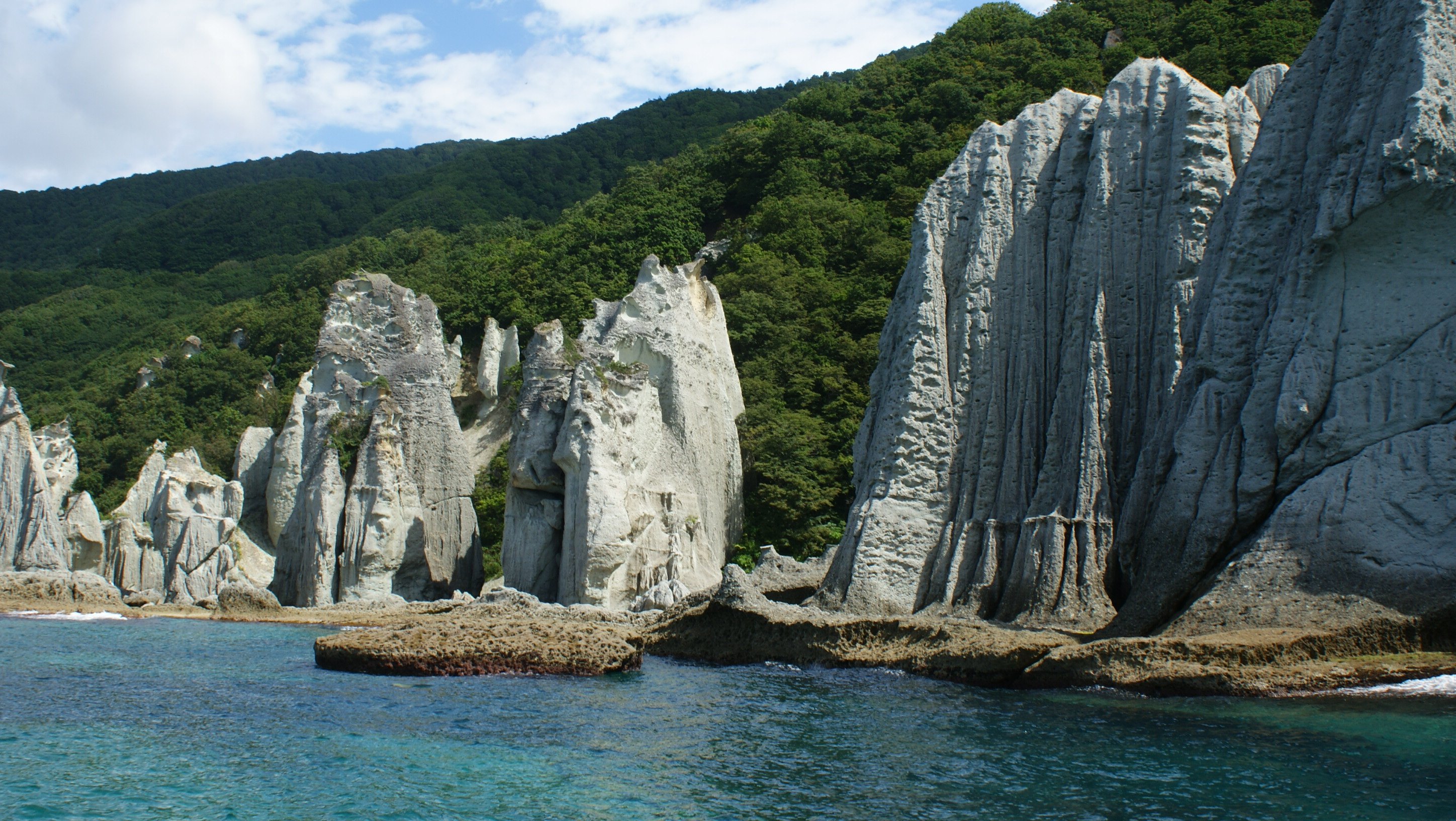 展望台のある駐車場から徒歩20分でたどり着くこともできますが、船で海からの眺めも楽しみながら行く方法をおすすめします。佐井村中心の佐井港からは定期便が出ていますし、牛滝地区からは予約でチャーター船の手配もできます。