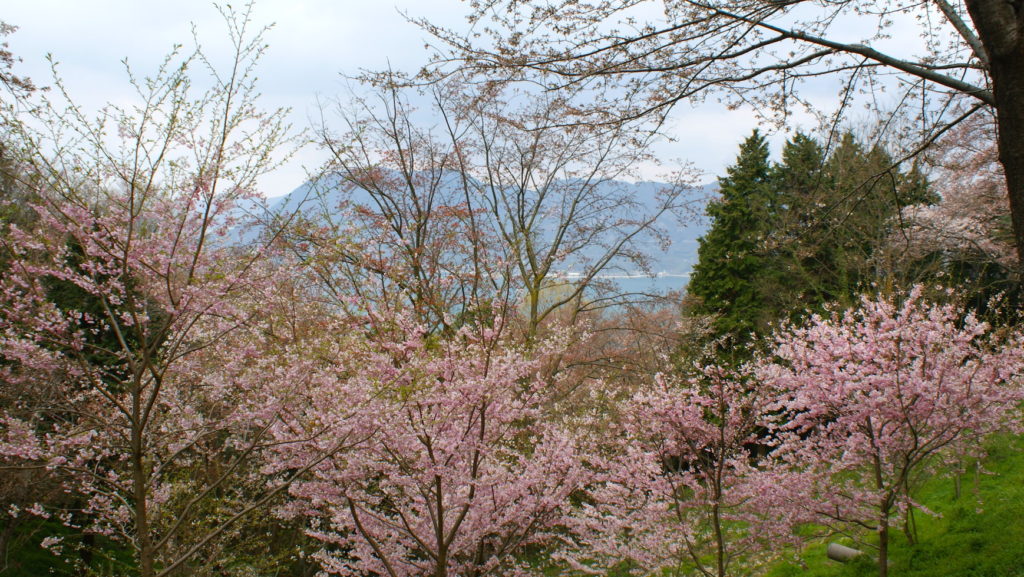 私が訪れた4月1日はまだ頂上付近はご覧の通り咲きはじめの状態でしたが、現時点では島のホームページの情報の通り満開へと向かっています。